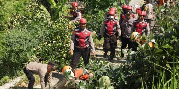 TUBAN – Polres Tuban Polda Jatim bersama Badan Penanggulangan Bencana Daerah (BPBD) Kabupaten Tuban menurunkan personel untuk membantu masyarakat Desa Tegalrejo, Kecamatan
