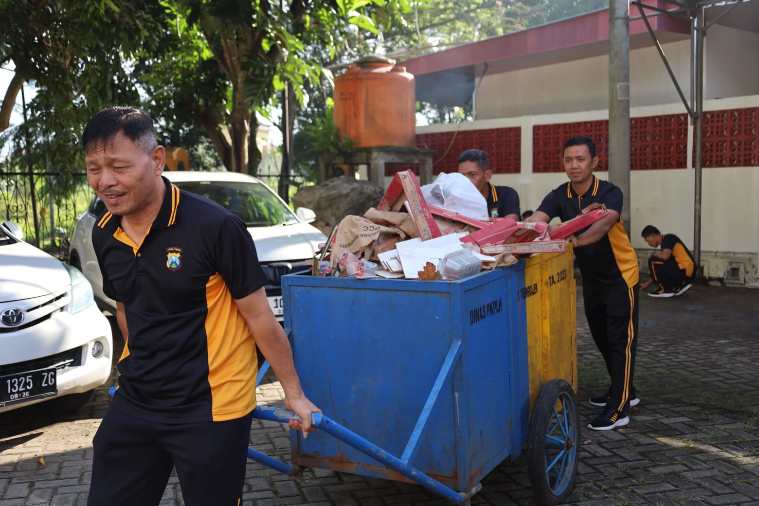 Polres Trenggalek – Suasana Mapolres Trenggalek hari ini nampak sedikit berbeda. Usai olahraga pagi, ratusan anggota Polres Trenggalek bergegas mengambil peralatan untuk membersihkan area Mako. Mulai dari halan depan hingga selokan tak luput dari aksi resik-resik tersebut. Tak butuh waktu lama, lingkungan Mapolres terlihat menjadi lebih bersih, cantik dan rapi. Jumat, (6/2).
